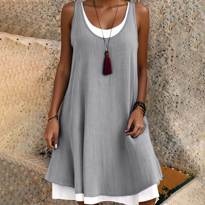 Women's Casual Sleeveless Fake Two-piece Loose Vest Dress